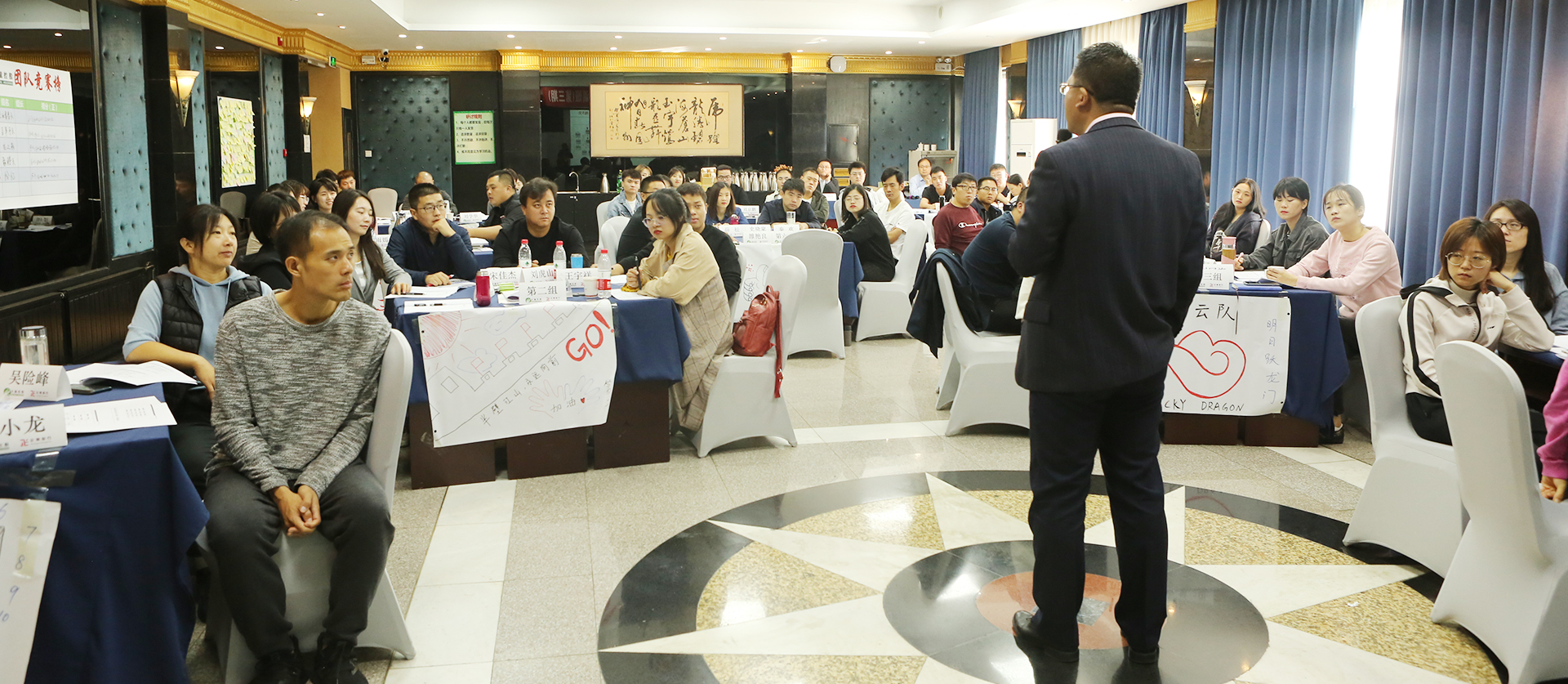 培训内容包括商务礼仪、职业素养、军事拓展等几个部分。授课老师也不局限于以讲为主的模式,更加注重体验式、互动式、引导式教学。